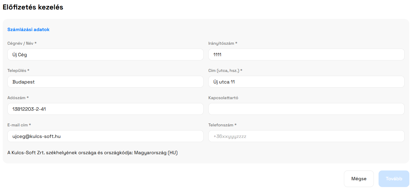 A tovább gombra kattintva meg kell adnunk az előfizetéshez szükséges adatainkat.