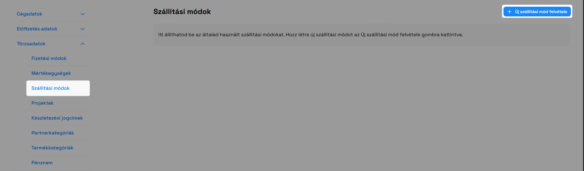 A menüpont alatt van lehetőség új szállítási módok rögzítésére.
