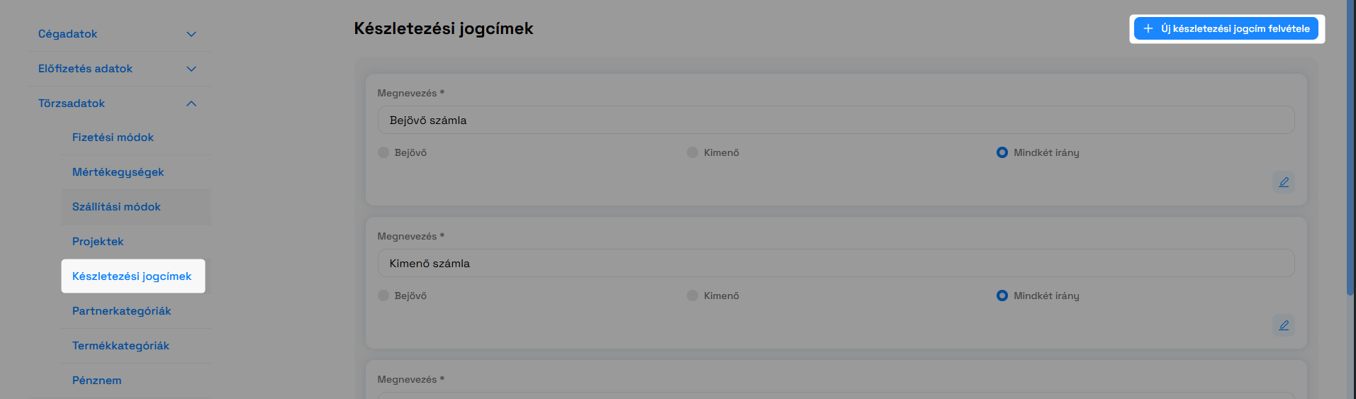 A menüpont alatt lehetőség van új készletezési jogcímek rögzítésére.