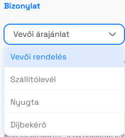 Minden bizonylattípushoz külön megjegyzés hozható létre: