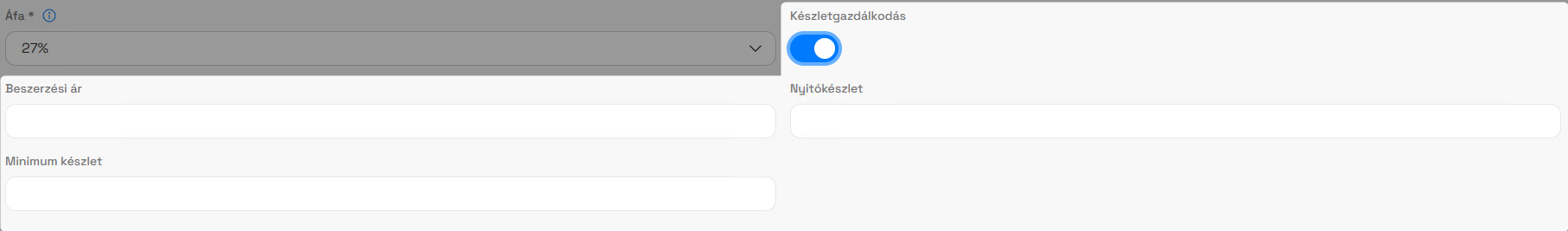 - Készletgazdálkodás: Amennyiben aktiváljuk ezt az opciót, a termékünk készletének változásai nyilván lesznek tartva a programban. Ezen termékek esetén bejövő számláink növelni, kimenő számláink és nyugtáink pedig csökkenteni fogják a termék készletét. Aktiválás után új opciók jelennek meg termék adatlapunkon. - Beszerzési ár: Megadhatjuk termékünk beszerzési árát, amivel nyitókészletünk bevételezésre kerül. A beszerzési ár értéke nettóban értendő.