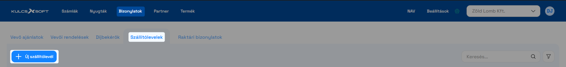 Új szállítólevél rögzítésére a Bizonylatok/Szállítólevelek/Új szállítólevél menüpont ad lehetőséget.