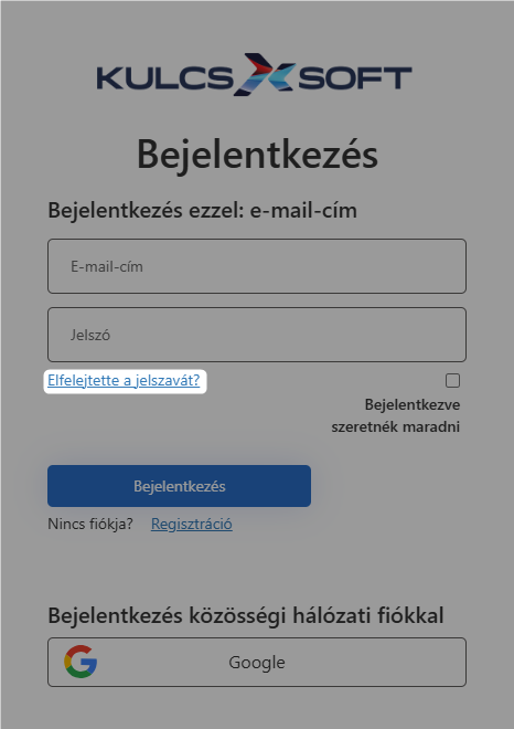 Amennyiben elfelejtettük létrehozott fiókunkhoz tartozó jelszavunkat és emiatt nem tudunk bejelentkezni a Kulcs Flow-ba, akkor az "Elfelejtette a jelszavát?" funkció lesz a segítségünkre.