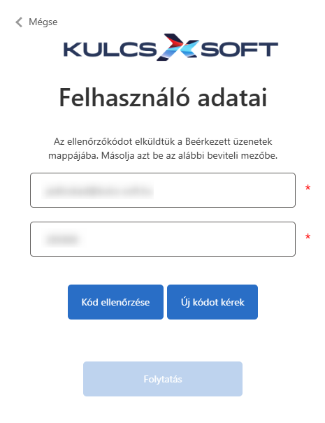 A feliratra kattintva meg kell adnunk regisztrációs e-mail címünket, majd egy hitelesítő kódot kell kérnünk, amit e-mailben fogunk megkapni.
