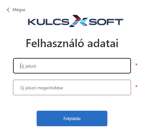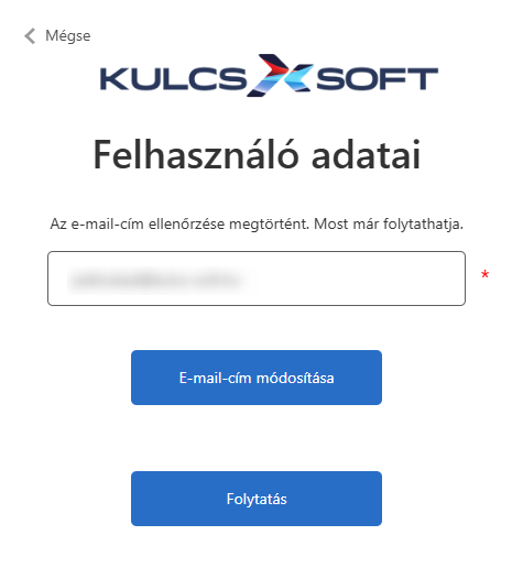 Sikeres kódellenőrzés után akár lehetőségünk van a fiókhoz tartozó e-mail cím módosítására is vagy pedig a Folytatás gombra kattintva megadhatjuk új jelszavunkat.