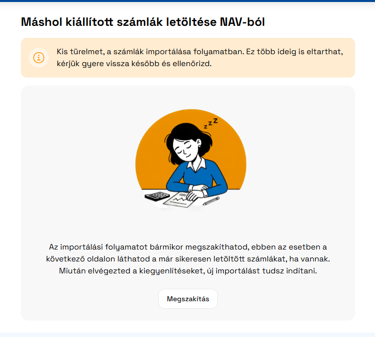 A funkcióra kattinva a Számlák importálása gombbal indítható el a letöltés. Fontos, hogy a funkció használatához szükséges érvényes technikai felhasználó megadása.